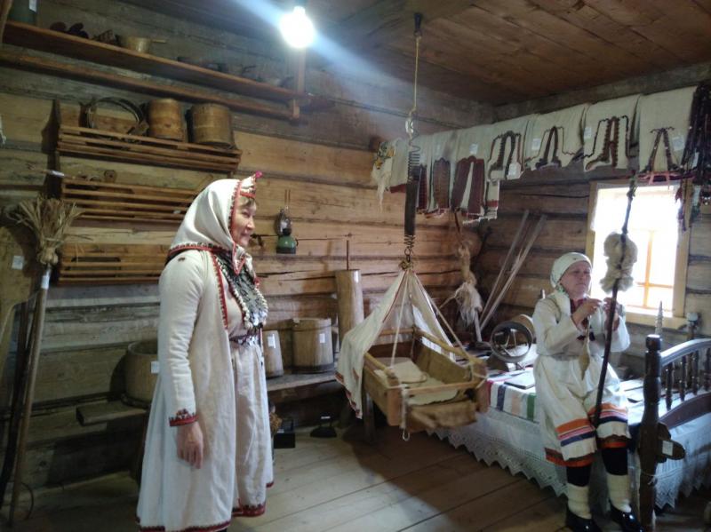 Затем мы пройдем на марийское подворье, где познакомимся с разными хозяйственными постройками, орудиями труда и проспособлениями, узнаем секреты марийских домов. А также побываем в традиционном жилом доме, где узнаем, например, как правильно надевать лапти "по-марийски" и как пользоваться веретеном. А также очаровательные хранительницы марийской культуры на примере своих костюмов покажут все их особенности, вы поймете, что каждая монетка и каждая тесемка - это часть сложной системы оберегов.