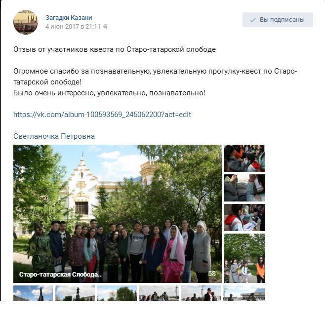 Огромное спасибо за познавательную, увлекательную прогулку-квест по Старо-татарской слободе!