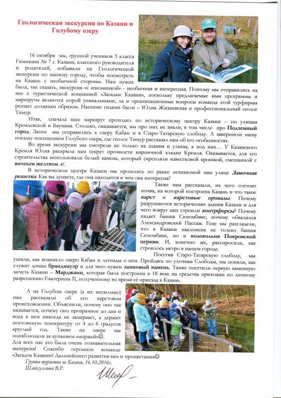 Профессионализм представителей фирмы Айрата Нурхаматова и Юлии Жизневской позволил ученикам нашей школы узнать историю города и оценить его достопримечательности