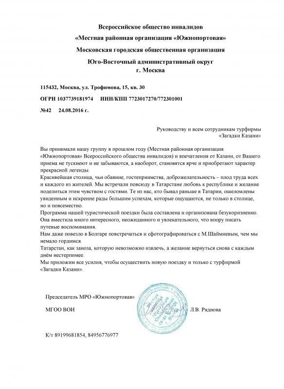 Администрация МОУ "Средней общеобразовательной школы №10" г. Ярославля в лице директора Ключниковой Марины Николаевны выражает благодарность "Загадки Казани" (ООО "Загадки Евразии") за организацию экскурсионной поездки учеников 8-х и 10-х классов нашей школы